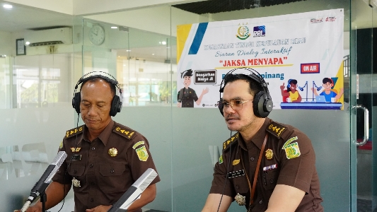 MafiNews.com, Tanjungpinang - Pada hari Senin tanggal 06 November 2023 sekira pukul 10.00 WIB sampai pukul 11.30 WIB bertempat di Studio Pro 1 RRI Tanjungpinang telah dilaksanakan Kegiatan Dialog Interaktif Jaksa Menyapa dengan Narasumber Kasi Sosial, Budaya dan Kemasyarakatan Bidang Intelijen Hadi Riyanto, S.H, M.H., Kasi Penerangan Hukum Bidang Intelijen Denny Anteng Prakoso., SH., MH dan dipandu oleh Penyiar Radio RRI Pro 1 Tanjungpinang Sdri Rika dengan tema “ PROGRAM JAKSA GARDA DESA (JAGA DESA)”.