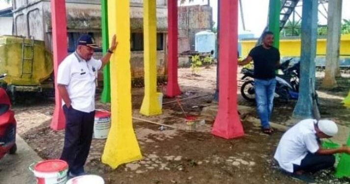 MafiNews.com, Dinas Lingkungan Hidup (DLH ) Rohil, kerahkan anggota kerja (Satgas) guna melakukan pengecatan, penataan, penanaman pohon dan pembersihan kanal baypark areal water leading peninggalan sejarah zaman Belanda, pada Rabu, 12 Juli 2023 di Jalan Siak Bagansiapiapi.
