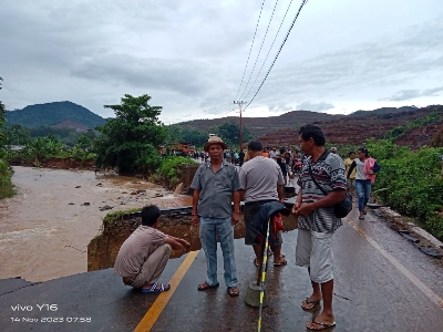 Putusnya jalan tersebut terjadi sejak 11 November 2023 Malam dan saat ini kendaraan roda empat tidak bisa melintas lagi.