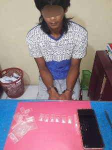 "Barang Bukti Enam Paket Narkotika jenis Sabu yang dibungkus dalam Plastik Klip Kecil Bening, 10 Plastik Klip Kecil Bening satu unit HP merk OPPO warna Biru," terang Kasat.