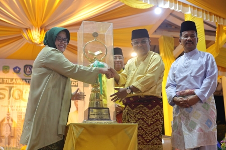 Piala Bergilir Juara STQH Provinsi Kepri ke-X kemudian diserahkan oleh Bupati Karimun Aunur Rafiq selaku tuan rumah kepada Wakil Gubernur Kepri Marlin Agustina untuk diserahkan kepada Walikota Batam HM Rudi sebagai juara umum. (Mn)