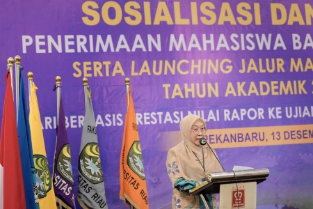 MafiNews.com, Pekanbaru - Rektor Unri Prof Dr Sri Indarti SE MSi membuka kegiatan sosialisasi, promosi dan membuka penerimaan mahasiswa baru (PMB), seleksi jalur mandiri (PBUD dan PBM) tahun akademik 2024/2025 dari berbasis prestasi nilai rapor ke ujian tulis berbasis computer (UTBK), Rabu (13/12). Kegiatan yang dihadiri kepala sekolah se-kota Pekanbaru ini dilangsungkan di salah hotel di Kota Pekanbaru.
