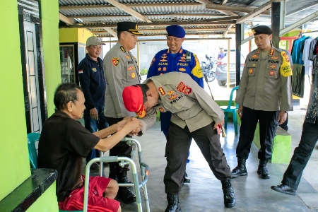 Sementara itu Dirreskrimum Kombes Nur Santiko saat memberikan bingkisan sembako kepada warga masyarakat bernama Ibu Kada Idris merasa iba melihat kondisi kaki dan tangannya yang cacat dan hanya duduk di lantai beralaskan tikar.