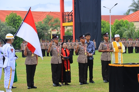 Mulai hari ini, pada diri saudara telah melekat identitas dan kehormatan profesi serta tugas dan tanggung jawab sebagai Bhayangkara Negara. Setiap sikap, tutur kata dan perilaku akan menjadi tauladan bagi masyarakat.