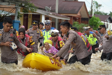 Ratusan Rumah Terendam Air Kapolres Rohul Evakuasi Lansia Korban Terkurung Banjir