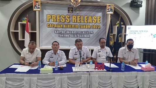MafiNews.com, Karimun Kepri -- Kantor Imigrasi Kelas II TPI Tanjung Balai Karimun, Kementrian Hukum dan Ham Kepulauan Riau mengelar Press realese Data Capai Kinerja Tahun 2023. Rabu (3/1/2024) di Aula pertemuan Kantor Imigrasi Karimun.