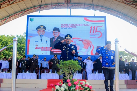 Komandan Satuan Radar (Dansatradar) 232 Dumai Letkol Lek M. Fathillah P, bertindak sebagai inspektur upacara pada Upacara Harkitnas yang dilangsungkan di Taman Bukit Gelanggang, Senin (22/5/2023) pagi.