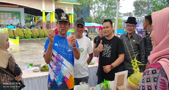 MafiNews.com, Inhil - Meski di tengah guyuran hujan yang cukup deras, tidak menyurutkan langkah Bupati Indragiri Hilir (Inhil) HM Wardan untuk hadir dan menyaksikan langsung lomba makanan rakyat berbahan kelapa, di Lapangan Gajah Mada Tembilahan, Senin 22 Mei 2023 sore.