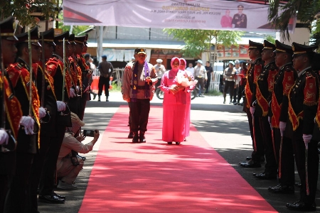 Jajar Penghormatan dan Pedang Pora Sambut Kedatangan Kapolda Brigjen Pol Drs Pudji Prasetijanto Hadi, MH di Polda Gorontalo