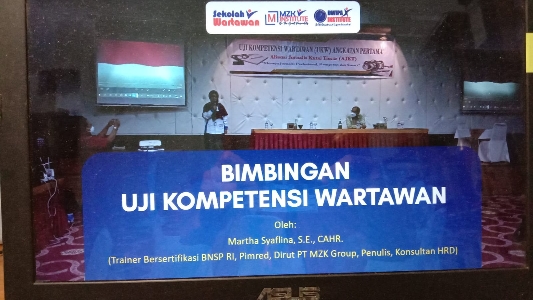 Sesi bimbingan UKW ini diisi oleh tim dari MZK Institute. Sebuah lembaga yang sudah terbukti melatih banyak wartawan yang berkompeten setelah UKW. Pematerinya Martha Syaflina, S.E., CAHR. selaku mentor dari Sekolah Wartawan MZK Institute.
