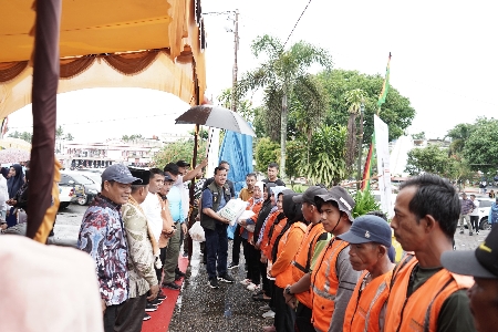 MafiNewa.com, Teluk Kuantan - Bersempena memasuki Bulan Suci Ramadhan, serta pasca di Raihnya Trophy Adipura sebanyak 301 petugas kebersihan atau Pasukan Garuda Putih Kuansing mendapatkan bantuan peket sembako dari Bupati Dr H Suhardiman Amby, Ak, MM.