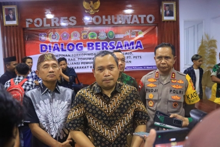 Gorontalo, Mafinews.com, Bertempat di Polres Pohuwato, Kapolda Gorontalo Irjen Pol. Drs. Pudji Prasetijanto Hadi, MH pada Minggu kemarin 31 Maret menghadiri dialog bersama Forkopimda Provinsi Gorontalo, Forkopimda Kabupaten Pohuwato, Perusahaan PT. Pets, serta aliansi Pemuda, mahasiswa dan masyarakat Pohuwato, Minggu (01/4/2024).,