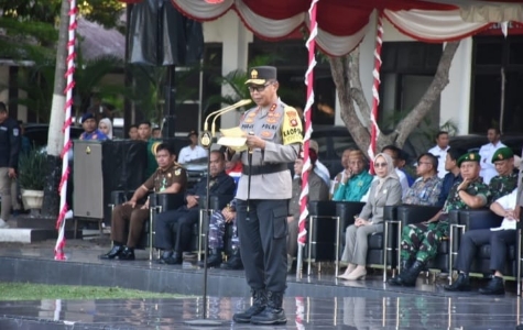 Gorontalo, MafiNews.com, Kapolda Gorontalo Irjen Pol Drs Pudji Prasetijanto Hadi MH memimpin apel gelar pasukan dalam rangka Operasi Ketupat 2024 menjelang perayaan Hari Raya Idul Fitri. Acara tersebut dihadiri Forkopimda tingkat satu serta pejabat utama Polda Gorontalo.