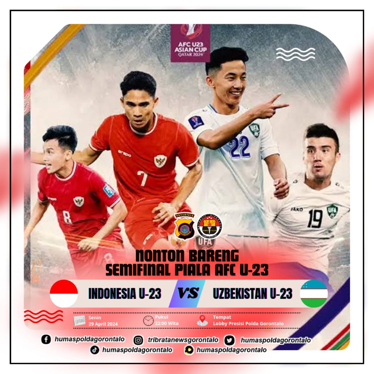 Gorontako, MafiNews.com, Agenda Nobar Piala Asia U23 akan berlangsung ruang Lobby Presisi Polda Gorontalo. Laga Timnas Indonesia vs Uzbekistan akan digelar di stadion Abdullah bin Nasser bin Khalifa Stadium, Doha, Qatar.