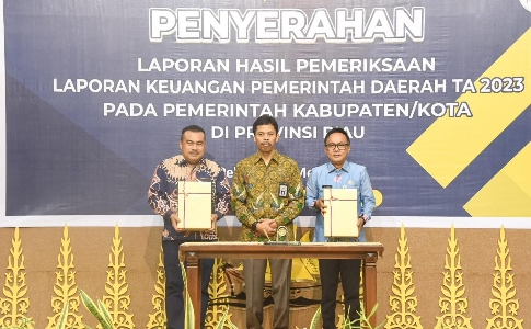 Opini WTP tersebut diserahkan oleh Kepala Badan Pemeriksa Keuangan (BPK) RI Perwakilan Provinsi Riau Jariyatna saat menyerahkan laporan hasil pemeriksaan atas Laporan Keuangan Pemerintah Daerah (LKPD) Kabupaten Bengkalis Tahun Anggaran 2023 di Auditorium BPK Perwakilan Provinsi Riau, Rabu, 22 Mei 2024.