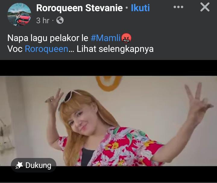 Gorontalo, Mafi News.com - Perselingkuhan yang disebabkan oleh (Perebut Laki Orang) “Pelakor” akhir-akhir ini menjadi trending perbincangan di media sosial oleh netizen Gorontalo. Official Music Video berjudul “Pelakor” karya musisi Gorontalo yang diposting melalui akun Facebook Roroqueen Stevanie mendapat apresiasi dari netizen dari berbagai daerah yang hingga saat ini mencapai 130.000 tayangan, 1.600 reaction dan hampir mencapai 2.000 share dari netizen.