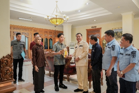 Ditemani Ketua Panitia Pacu Jalur, Andi Cahyadi dan Kadis Pariwisata, Drs Azhar Ali, MM, serta sejumlah pejabat terkait, Bupat Suhardiman menyambangi Kantor Balaikota Surakarta, Rabu 5/6/24 pagi.