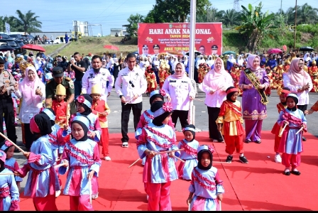 "Kita semua ikut bertanggung jawab untuk memastikan seluruh anak yang ada di daerah ini sehat dan aman serta terlindungi dari kekerasan maupun diskriminasi, terpenuhinya sarana dan prasarana mereka untuk mengembangkan kemampuan sebagai bekal dikehidupan sosial serta menanamkan nilai sosial dan budaya sedini mungkin kepada mereka," tegas Bupati.