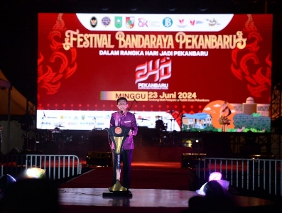 PEKANBARU, MafiNews.com - Pj Gubernur Riau yang diwakili oleh Pj Sekda Riau, Indra menghadiri malam puncak Festival Bandaraya Pekanbaru 2024 dalam rangka HUT Kota Pekanbaru ke-240. Acara ini dilaksanakan di halaman Mal Pelayanan Publik Kota Pekanbaru, Minggu (23/6/2024) malam.