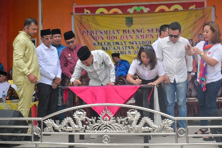 Rohil, MafiNews.com - Bupati Rokan Hilir (Rohil), Afrizal Sintong menghadiri acara peresmian ruang kelas belajar dan kantor untuk SD Negeri 001 dan SMP Negeri 003 Sinaboi hasil bantuan dari donatur di Kecamatan Sinaboi, Kabupaten Rokan Hilir, Provinsi Riau, Jumat (28/6/2024) sore.