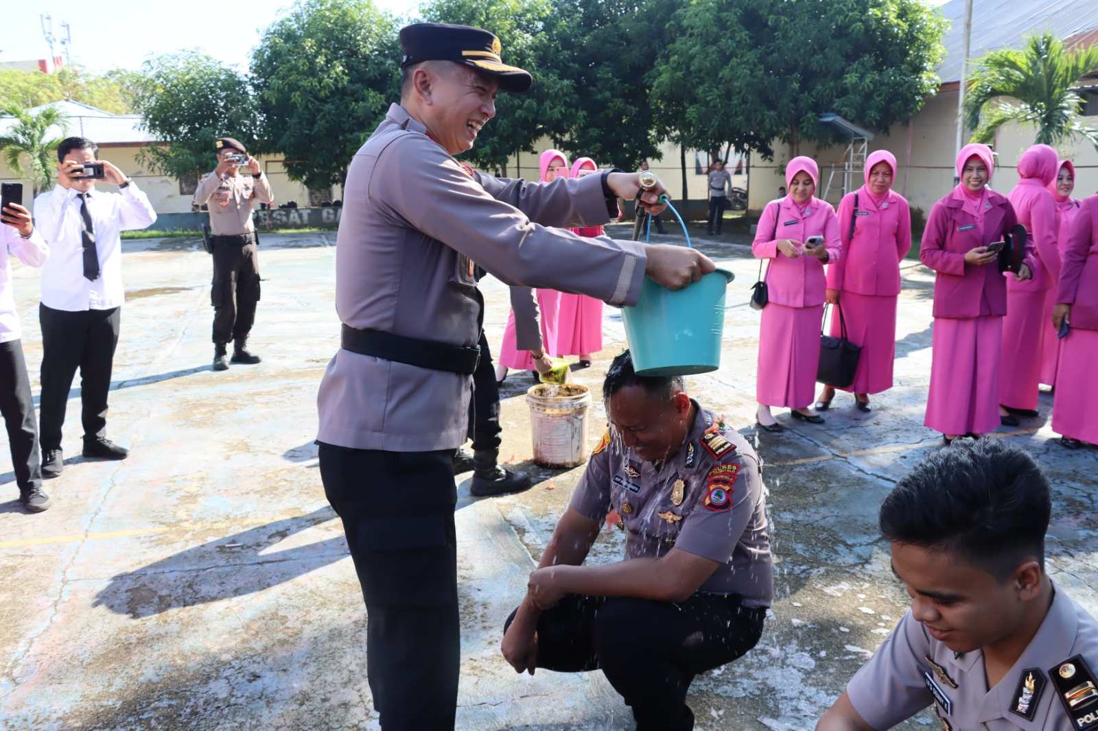Tradisi Siraman Air Bunga, Mewarnai Kenaikan Pangkat Personil Polres Gorontalo Periode 01 Juli 2024.