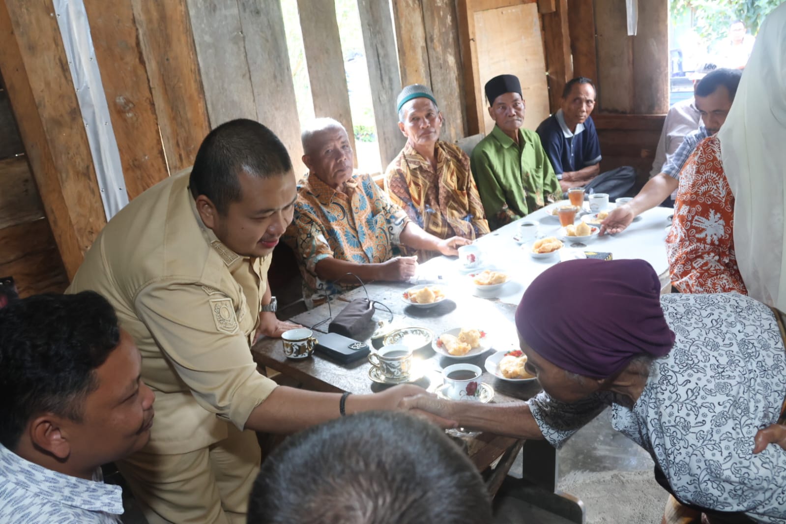 Dalam suasana akrab, Bupati Dolly berbincang hangat dengan para orang tua dan anak muda desa setempat. Ia menekankan akan pentingnya menjaga persatuan dan gotong royong dalam membangun desa.