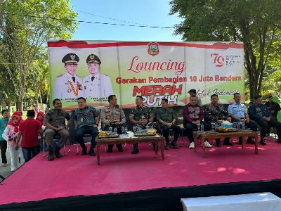 Polres Gorontalo Hadiri Lounching Gerakan Pembagian 10 Juta Bendera Merah Putih, Rangkaian Hari Kemerdekaan Ke-79 Tahun 2024