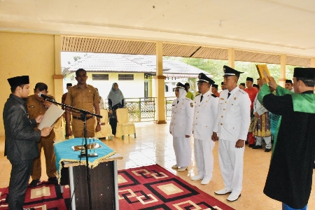 Pengambilan sumpah dan pelantikan Pj Kades tersebut dilakukan di aula kantor camat keduanya.