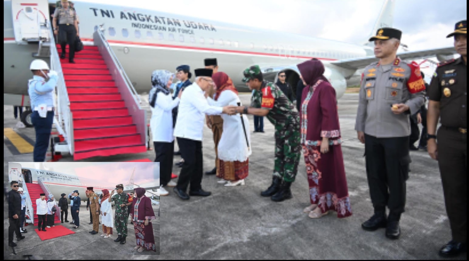 Turut menyambut kedatangan Wakil Presiden RI tersebut Pj. Gubernur Babel Sugito, Kapolda Babel Irjen Pol Hendro Pandowo,Danrem 045/Garuda Jaya Brigjen TNI Safta Feryansyah, S.E., S.I.P., M.Han.