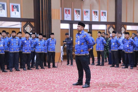 Upacara akhirnya berlangsung di Ballroom Gedung Utama Komplek Perkantoran Pemerintah Kota Pekanbaru, Tenayan Raya. Para peserta tampak mengikuti rangkaian upacara yang dipimpin Dandim 0301/Pekanbaru, Kolonel Kav Yuli Eko.