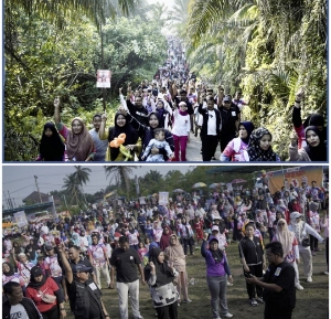 Muflihun, didampingi istrinya Rilla Muflihun, tiba di lokasi sekitar pukul 07.00 WIB dan disambut hangat oleh masyarakat. Pasangan tersebut langsung memimpin rombongan jalan santai sebelum bergabung dengan warga untuk senam bersama. Suasana semakin semarak dengan dukungan musik, sorak-sorai, dan interaksi akrab antara Muflihun dan warga, menambah kedekatan yang terasa hangat di antara mereka.
