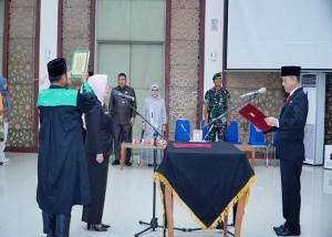 Pengambilan Sumpah Jabatan dan Pelantikan Pj Sekda Kampar Ramlah tersebut, langsung dilaksanakan oleh Pj Bupati Kampar Hambali, SE,MH yang dipusatkan di Aula Kantor Bupati Kampar Bangkinang Kota.