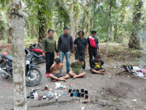 Dari lokasi kejadian, aparat menyita sejumlah barang bukti, termasuk satu paket besar sabu-sabu seberat 1,7 gram, 36 paket kecil, uang tunai Rp12.969.000, serta peralatan pendukung seperti timbangan digital dan dua alat hisap. Selain itu, lima unit sepeda motor, 10 telepon genggam, dan barang-barang lain yang terkait dengan aktivitas pelaku juga berhasil diamankan.