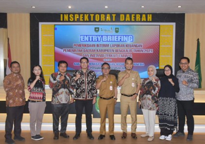 MafiNews.com, Bengkalis - Bupati Kasmarni diwakili Sekretaris Daerah dr. Ersan Saputra TH, menghadiri Entry Briefing Pemeriksaan Interim (Pemeriksaan Pendahuluan) atas Laporan Keuangan Pemerintah Daerah Kabupaten Bengkalis tahun anggaran 2024 oleh BPK RI Perwakilan Riau, Senin 24 Februari 2025, di lantai II Kantor Inspektorat Bengkalis.