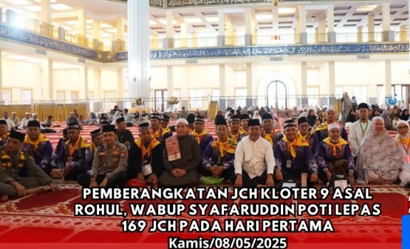 MafiNews.com, Rokan Hulu - Wakil Bupati Rokan Hulu H. Syafaruddin Poti, SH, MM melepas keberangkatan 169 Jamaah Calon Haji (JCH) Kloter 9 asal Rohul dari Masjid Agung Islamic Center (MAIC) sebelum bertolak ke Bandara Tuanku Tambusai menuju Bandara Hang Nadim Batam dengan menggunakan Pesawat ATR 72 Wings Air, Kamis (8/5/2025) Pagi