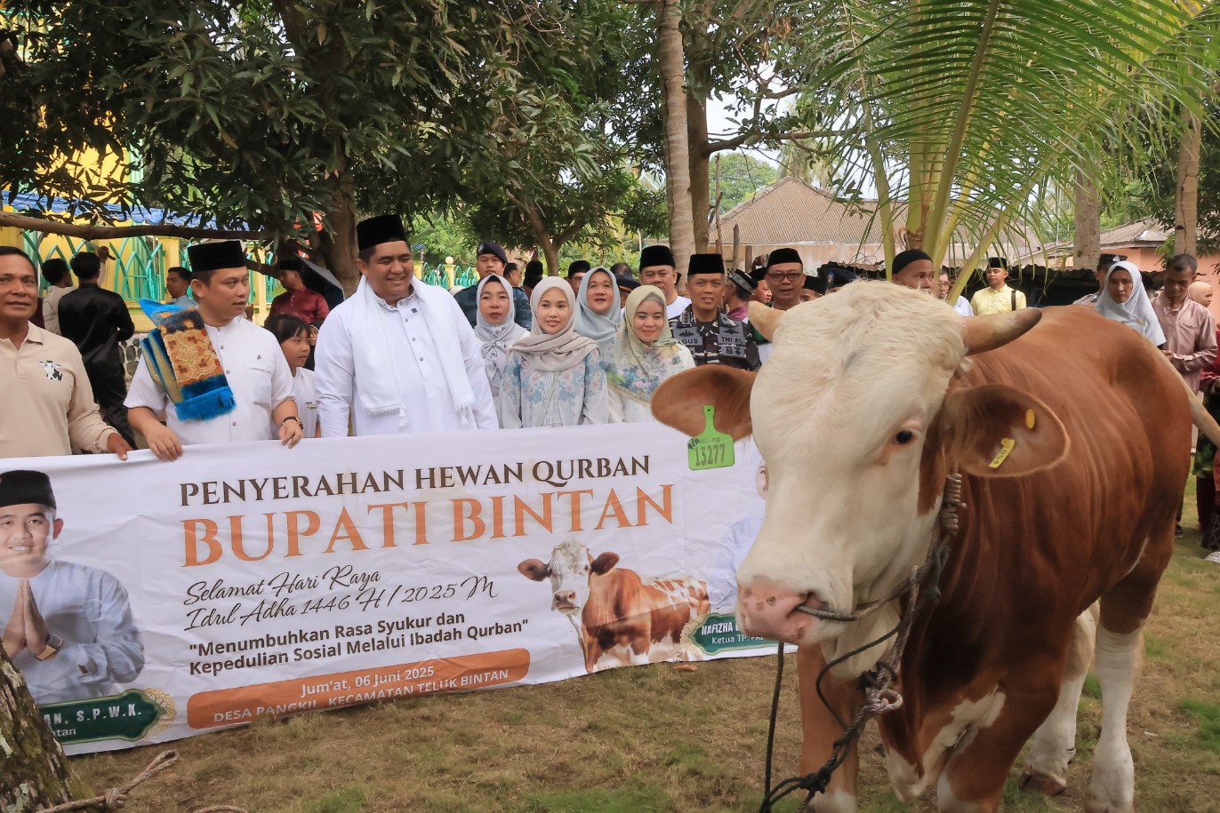 MafiNews.com, Bintan - Pelaksanaan Salat Sunah Idul Adha 1446 H tingkat Kabupaten Bintan dilaksanakan di Lapangan Sepak Bola M. Arifin Pulau Pangkil, Kecamatan Teluk Bintan, Jumat (06/06). Bupati Bintan Roby Kurniawan yang bertindak sebagai Khatib, menguraikan berbagai alur kisah bagaimana ibadah kurban itu mengandung banyak pelajaran bagi Umat Islam.