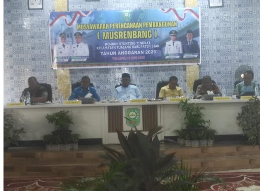MafiNews.com, Siak - Wakil Bupati Siak, Syamsurizal, S.Ag., M.Si, menghadiri kegiatan Musyawarah Perencanaan Pembangunan (Musrenbang) tingkat Kecamatan Tualang pada Jumat, 20 Juni 2025, bertempat di Aula Kantor Camat Tualang. Dalam forum ini, beliau menyampaikan sejumlah program prioritas Pemerintah Kabupaten Siak yang bertujuan meningkatkan kesejahteraan masyarakat.