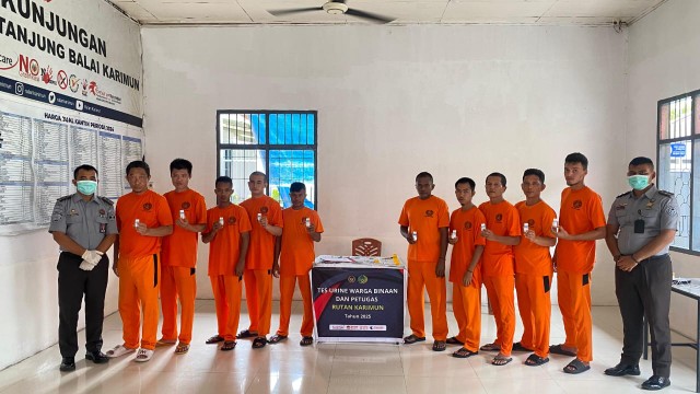Tes urine dilaksanakan sebagai salah satu komitmen Rutan Kelas IIB Tanjung Balai Karimun sebagai pilot project Rutan BERSINAR (Bersih Dari Narkoba).