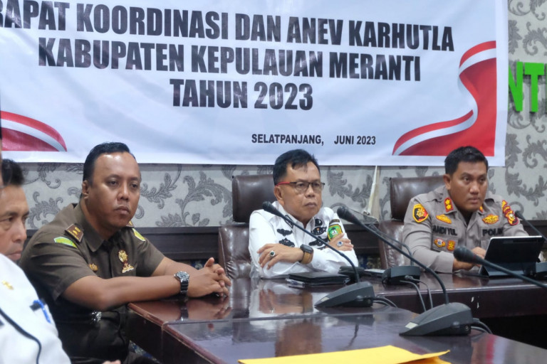MafiNews.com, Meranti - Pelaksana tugas (Plt) Bupati AKBP (Purn) H. Asmar bersama unsur Forkopimda Kepulauan Meranti mengikuti virtual Rapat Koordinasi Analisa dan Evaluasi (Anev) Penanggulangan Karhutla Provinsi Riau, bertempat di Ruang Rapat Melati Kantor Bupati, Rabu (7/6/2023). Rakor dipimpin langsung oleh Gubernur Riau Drs. H. Syamsuar, M.Si yang didampingi Kepala BNPB Pusat Letjen TNI Suharyanto, S.Sos.,MM dan Anggota DPR RI Komisi VIII Dr. H. Achmad, M.Si, serta dihadiri jajaran Forkopimda Provinsi Riau, dan kabupaten/kota se- Provinsi Riau. Gubernur Riau (Gubri) Syamsuar mengatakan rakor dilaksanakan guna menetapkan tugas dalam upaya melakukan pencegahan kebakaran hutan dan lahan juga penanganannya, mengingat saat ini sudah memasuki musim kemarau. "Adapun jumlah hotspot per tanggal 1 Januari hingga 5 Juni 2023 di Riau sebanyak 657 dengan luas lahan yang terbakar 473,58 hektar," papar Gubri. Sebagai antisipasi, tambahnya, saat ini Pemprov Riau telah menetapkan status siaga darurat sejak 13 Februari dan berakhir 30 November 2023. Bahkan telah membentuk komando satgas. Kepala BNPB Letjen TNI Suharyanto mengarahkan kepada setiap daerah untuk tidak lengah, dengan membentuk Satgas dan melakukan patroli secara rutin. "Melakukan pemantauan, prediksi cuaca, titik panas dan tinggi muka air tanah gambut, serta mengidentifikasikan kebutuhan dan kesiapan personel," tegasnya. Begitu juga dengan ketersediaan peralatan dan logistik operasional, sebut Suharyanto, daerah bisa meminta dukungan pemerintah pusat, agar penanganan karhutla efektif dan efisien. "Lakukan penegakan hukum bagi pelaku pembakaran hutan dan lahan agar menimbulkan efek jera," ujarnya. Usai mengikuti Rakor tersebut, Plt Bupati H. Asmar menyampaikan jajaran Pemkab Meranti beserta seluruh perangkat kerja daerah maupun instansi vertikal siap mendukung dan mengikuti arahan yang disampaikan oleh BNPB juga Gubernur Riau. Pihaknya juga terus memantau segala potensi yang dapat menyebabkan kebakaran lahan dan hutan di wilayahnya. "Saat ini jajaran Pemkab Meranti bersama unsur TNI/Polri, masyarakat dan pihak perusahaan siap melakukan pencegahan dan selalu siaga untuk menghadapi kemungkinan yang terjadi," jelasnya. (Kmf/Mn)