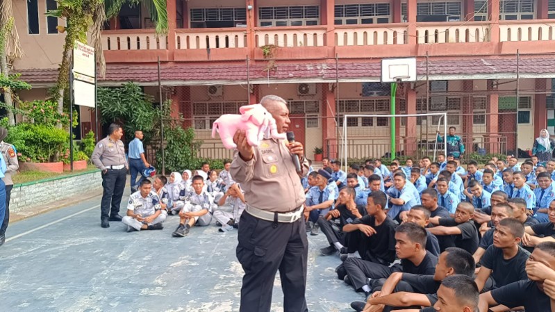Kasubdit Kamsel Ditlantas Polda Riau AKBP Dasril, S.Pd., M.M. menyampaikan bahwa kegiatan ini merupakan bentuk nyata kehadiran Polri di lingkungan pendidikan.