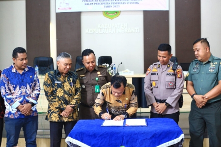 MafiNews.com, Meranti - Sebagai upaya optimalisasi intervensi penurunan stunting terintegrasi dengan seluruh lintas sektor dan masyarakat, Tim Percepatan Penurunan Stunting (TPPS) Pemerintah Kabupaten Kepulauan Meranti menyelenggarakan Rembuk Stunting, sekaligus penandatanganan komitmen dan kesepakatan bersama antara Pemerintah dengan seluruh pihak terkait dalam rangka percepatan penurunan Stunting di Kabupaten Kepulauan Meranti Tahun 2023.