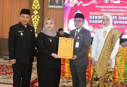 Bupati Bengkalis Kasmarni, Selasa, 1 Agustus secara resmi mengambil sumpah dan melantik dr. Ersan Saputra sebagai Sekda definitif.