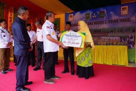 Bantuan itu diserahkan di SMA 1 Tebing Tinggi, Kabupaten Kepulauan Meranti, Rabu (30/8/2023) bersamaan dengan Penyerahan Surat Keputusan (SK) Pegawai Pemerintah dengan Perjanjian Kerja (PPPK) kepada tenaga pendidik SMA/SMK/SLB.