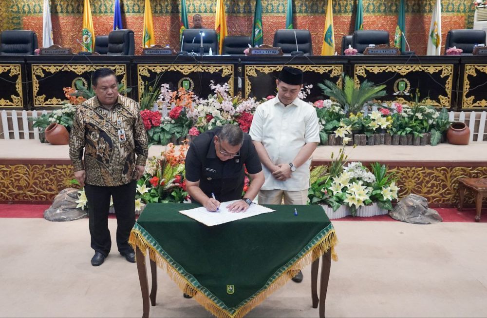 Nota kesepakatan tersebut ditanda tangani oleh Wakil Gubernur Riau, Edy Natar Nasution dan Wakil Ketua DPRD Provinsi Riau, Hardianto. Kamis, (14/9/2023).