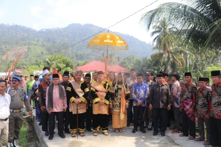 "Gelar adat sang sako Rajo Nan Sati Alam Batuah, kepada Pak Syamsuar dan isteri Ibu Misnarni sebagai Puti Intan Batuah, ini berlaku seumur hidup," kata ketua panitia Sekretaris Kaum Suku Caniago saat membacakan SK gelar adat kepada Gubri dan isteri.
