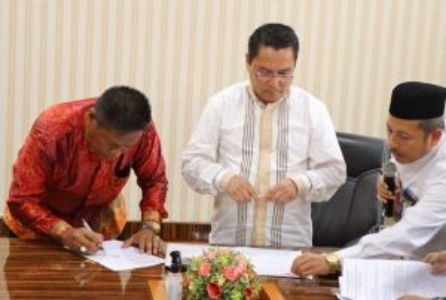 MafiNews.com, Pekanbaru - Kakanwil Kemenag Riau Mahyudin didampingi Kabid Pendidikan Madrasah Muliardi menandatangani dan melakukan Serah Terima Alih Status Pembangunan Barang Milik Negara (BMN) berupa Aset yang didanai dengan Surat Berharga Syariah Negara (SBSN) tahun 2022.