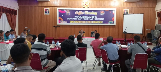 Coffee Morning Pemilu Damai Tahun 2024 dihadiri oleh Kapolres Kuansing AKBP Pangucap Priyo Soegito, S.I.K, MH, Wakapolres Kuansing Kompol Lilik Surianto,S.ST.,SH.,M.H, Para Kabag Polres Kuansing, Para Kasat Polres Kuansing, Para Kasi Polres Kuansing dan rekan-rekan awak media di Kabupaten Kuansing.