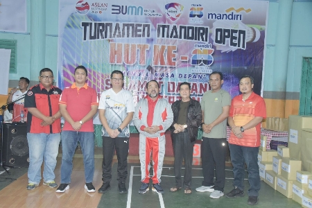 Bustami juga mengucapkan selamat hari jadi Bank Mandiri ke-25, semoga Bank Mandiri semakin jaya Menuju Masa depan seraya mengapresiasi atas dilaksanakannya turnamen bulutangkis ini.