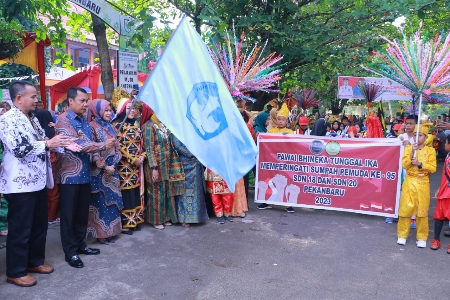 "Dalam rangka peringatan Sumpah Pemuda, murid SD Negeri 18 dan SD Negeri 20 menggelar acara pawai Sumpah Pemuda. Saya berharap peringatan Sumpah Pemuda ini menjadikan keberagaman etnis sebagai sebuah kekuatan," kata Pj Wali Kota Pekanbaru Muflihun usai pelepasan peserta pawai.